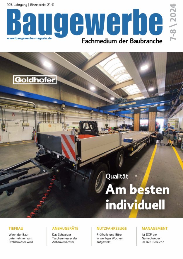 Der Traditionstitel Baugewerbe bietet Bauunternehmern in den vier Kernrubriken Bau, Baumaschinen, Nutzfahrzeuge und Management einen kompakten Überblick über Trends und Innovationen und greift auf, was die Branche bewegt. Der Mix aus Berichten aus der Praxis, Produktneuheiten und exklusiven Interviews mit Top-Managern bietet Orientierung und Ausblick. Das Redaktionsteam beleuchtet aktuelle Bauprojekte und zeigt auf, wie der Einsatz von neuen Technologien und intelligenten Baumaschinen Unternehmen dabei hilft, wirtschaftlicher zu arbeiten und sich im Wettbewerb einen Vorsprung zu verschaffen. Baugewerbe richtet sich an Bauunternehmer, Führungskräfte und Entscheider in der Baubranche. Baugewerbe bietet Ihnen einen kompakten Überblick über Trends und Innovationen und greift auf, was die Branche bewegt.